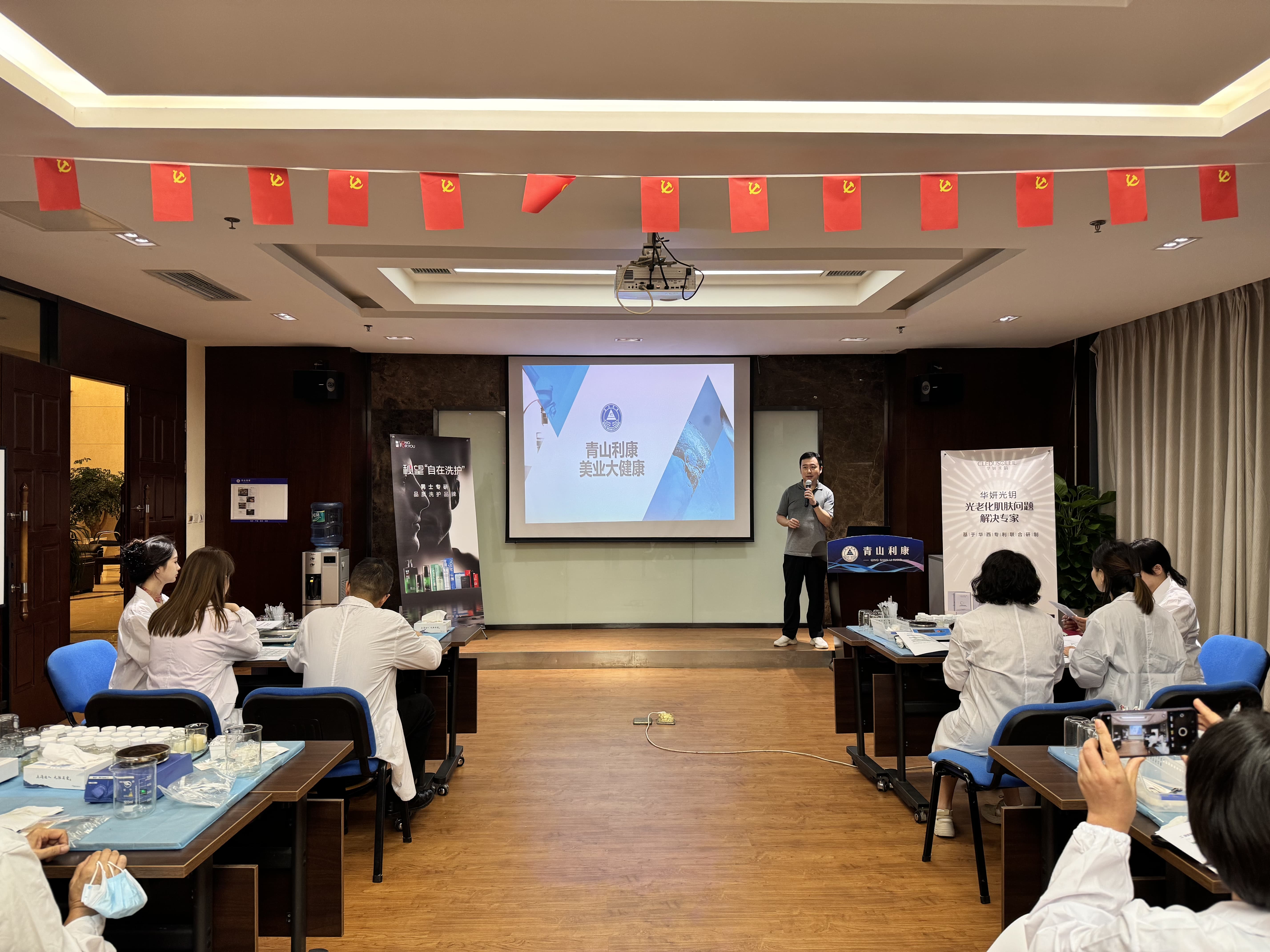 期间,与全国各地的皮肤科专家及研发人员进行了深入的技术探讨,分享了青山利康在男士高品质护理产品研发等方面的成果与经验。